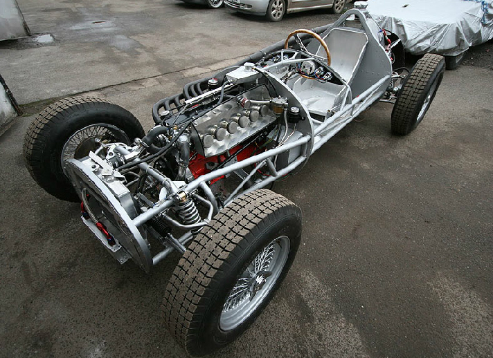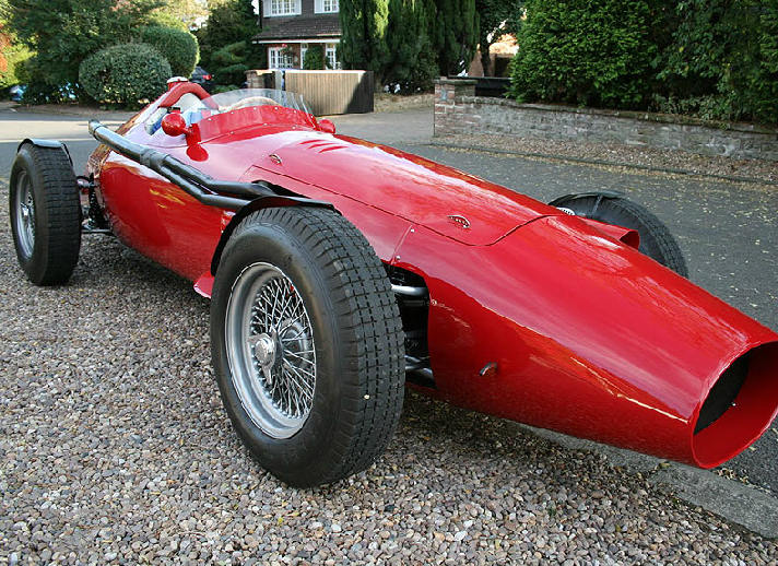 This replica is meant to evoque the legendary Maserati 250F Grand Prix car.  Again, it doesn't perfectly copy the lines of the original, but the feel is there for sure. The BMW straight six powerplant, detailed and finished in a very 1950's style, gives it a very convincing sound as well.